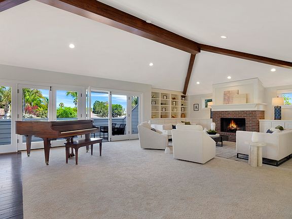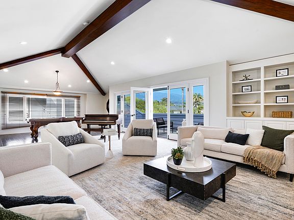 A standout in the heart of Samarkand, this 4,500+SF home renovated by Romasanta Construction blends quality, scale, and thoughtful design. The spacious kitchen with Viking and Bosch appliances anchors the home, opening to a dining area and adjacent sitting room ideal for gathering. A vaulted Great Room with mountain-view deck and fireplace adds volume and versatility, while five en-suite bedrooms are privately located, including a generous primary suite with view balcony. The tropical, fenced backyard features a pool, spa, outdoor dining patio, and permitted pool house with sauna and half bath. Additional highlights include an office/art room, high ceilings, crown molding, and attached 2-car garage. Set on a private elevated lot near Upper De La Vina amenities and outside high fire zones.