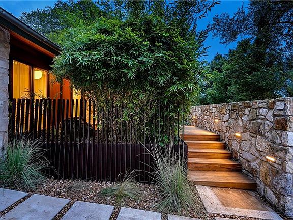 No expense was spared and no detail was neglected in this stunning, down-to-the-studs remodel in Barton Hills. Situated on top of one of the most prestigious streets in this iconic Austin neighborhood, the comfortable yet stately architectural gem is as much a work of art as it is a home. The serenity of the front walkway, the clean lines, the cool colors, and the spa-like feeling of the bathrooms; every inch of the space strikes an impeccable balance of luxury and minimalism. The kitchen offers two sinks, a built-in stainless steel fridge, custom maple cabinetry with soft shutting drawers, Cesarstone countertops, Hafele aluminum roller shutter appliance garages,and a high-end commercial grade KitchenAid gas range. The exteriors feature Garapa wood decking, custom metal landscaping details, stone walls with integrated landscape lighting, a 650 gallon rain water collection system, and a Certified Wildlife Habitat in the backyard. The upgrades in this home are too many to list.