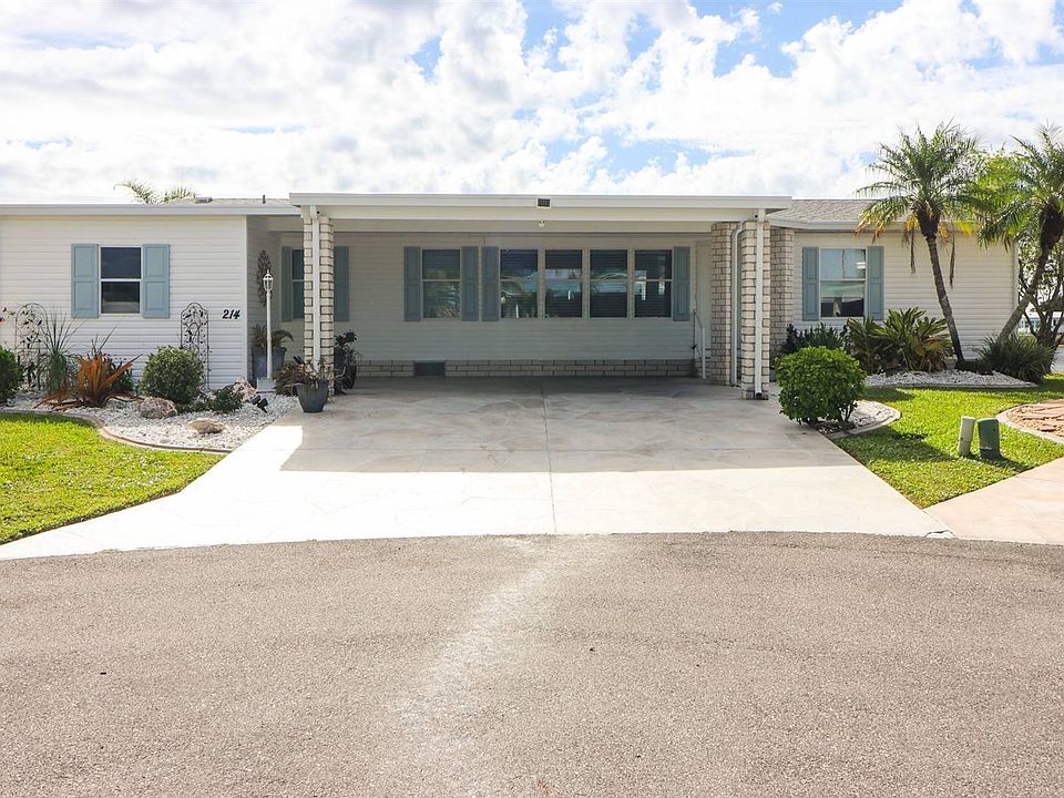 Rare WATERVIEW Triple Wide in Ventura Lake's! 27110 Jones Loop Rd #214, Punta Gorda, Fl. 33982 Un-Furnished! 1999 Palm Harbor Three BedRooms Two Bath Approx. 2336 sq. ft. including 16x20 Screened Lanai. 4 Car Carport with Mature Landscaping! Enter to Open Concept LivingRoom / DiningRoom with Vaulted Ceilings! Neutral Wall Color Pale Grey. Luxury Vinyl Planking. Hall w/Linen Storage. Guest Bath with Tub/Shower Combo. Office with WaterView. Guest BedRoom will accommodate Queen Size Grouping! Nice Window treatments included in Sale. Master BedRoom will accommodate Queen Size Grouping. Walk-In Closet. Master Bath Shower with Unique Rain Forest Shower Head Dual Vanities with an Additional Vanity for Your Beauty/Make-Up needs. Kitchen Appliances: French Door Bottom Freezer/ Flat Top Range/ Deep Sink with Disposal/ NO Dishwasher or Microwave. Walk-In Pantry. Curio Cabinet Cabinets. Additional Dry Bar Storage. Breakfast Nook. Laundry Alcove w/ NEW Granite Look Washer & Dryer included in Sale of Home! Florida Room with Triple Windows for another Great WaterView. Adjourning Door to Screened Lanai with Roll Down Shades & Epoxy Flooring. Exit to Patio with room for a Grill for Entertaining or for Amazing Sunset Views!