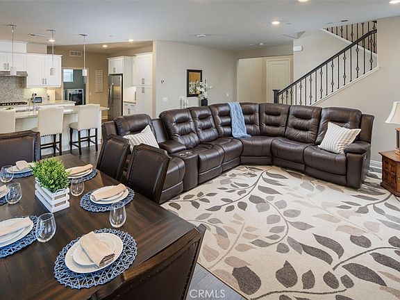 The open concept floorplan makes every day living and entertaining so nice! The kitchen has white shaker cabinets, granite counters, stainless steel appliances, and a large island overlooking the great room and dining area. 2 sets of sliding glass doors go to the backyard.