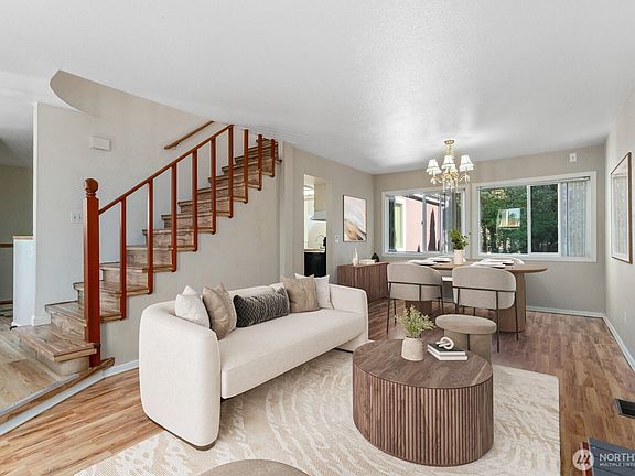 This spacious home is ready for your vision to make it your own. Conveniently located close to shopping and dining. Walkable to scenic Lake Meridian Park. The main level features an open kitchen layout and extra family room space that leads to the covered deck ideal for entertaining. Lower level bedroom ideal for guests or home office space. The upper level features a primary bedroom with walk in closet and en-suite plus two additional bedrooms and hallway bathroom. Hard surface flooring throughout. Easy access for commuting, shopping and recreation & entertainment! Under 10 minutes to Costco, Trader Joe's, Safeway, Fred Meyer, LA Fitness, Starbucks & more!
