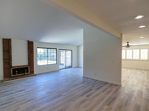 North Valencia 4 bedroom, 2 bath pool/spa home on a large corner lot. Courtyard entry leads to a spacious living room with a cozy fireplace. Formal dining room connects to bright kitchen featuring a breakfast nook, quartz countertop, stainless steel fridge and ample cabinets. Family room featuring plantation shutters is perfectly located with direct access to large 2 car garage. Primary ensuite bedroom has direct access to the vey spacious rear yard. Spacious home features laminate flooring and tile flooring through, recessed LED lighting, smooth ceilings and is freshly painted throughout.