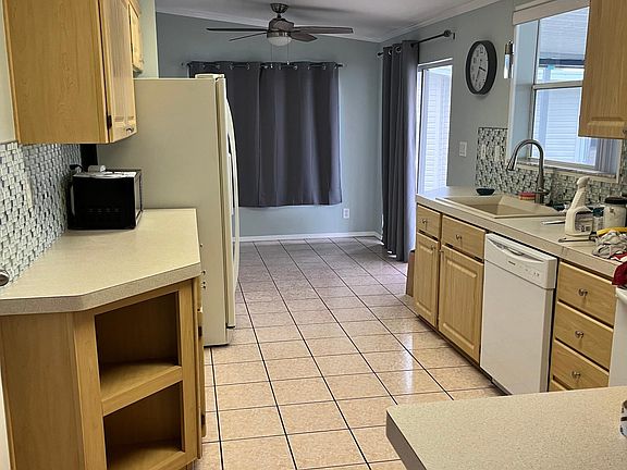 Manufactured home in Sun Key Village in Palmetto, FL. Gated community with many amenities including pool/hot tub, pickle ball court, corn hole, putting green, fire pit and more. One tenant must be over 50 years of age, other tenants minimum of 40. Must be able to pass a criminal background check, per the community, $50 application fee per tenant. Pets are negotiable, must be under 20/25lbs. Freshly painted, new ceiling fans and new hardwood flooring in bedrooms.