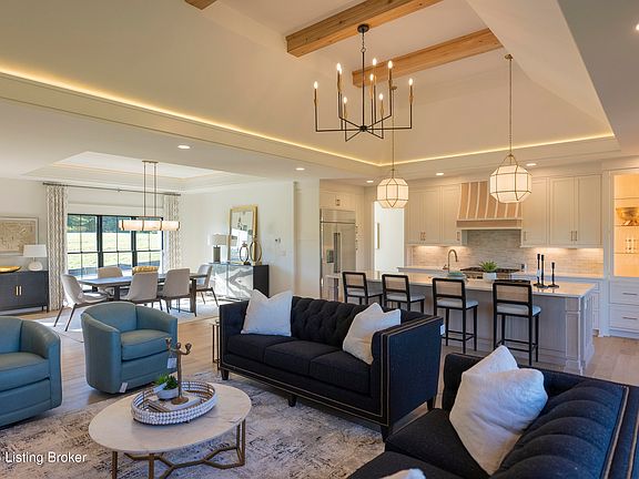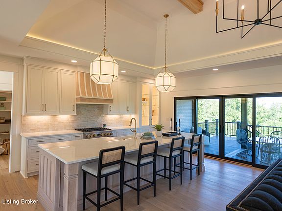 This P L Lyons Architectural Builders 5 Bedroom 4 Bath Ranch sits on a large private lot in the Reserve at Paramont. This great home is in the North Oldham school district. The open floor plan home features a spacious Great Room with a signature ceiling & linear fireplace. The large custom Kitchen has a 12-foot island, GE Monogram Appliances, & custom oversized pantry.