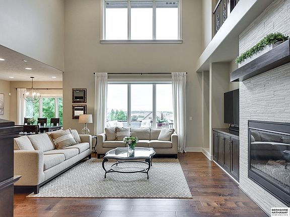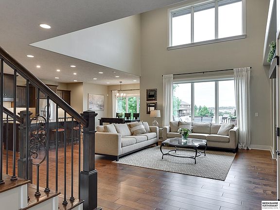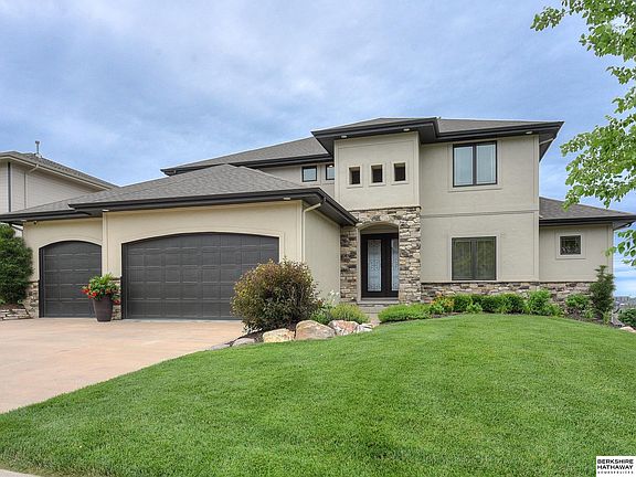 Contract Pending Simply stunning! This 1.5 story home is walking distance to Manchester Elementary school and is located at one of the high points of the neighborhood. This 4,100 sf home offers absolutely gorgeous views of sunsets and the evening Elkhorn lights. The main floor great room soars with a full wall of windows and a 2 story ceiling. The open floor plan features a kitchen with tremendous cabinet space and walk-in pantry. There are 5 generously sized bedrooms with the primary bedroom suite on the main level, 3 bedrooms plus bonus room on the second floor and 1 bedroom in the walkout lower level. The lower level features a large recreation space with wet bar and opens up to the flat & fully fenced backyard. Dual zone HVAC, 2 water heaters (new 2022) and RO water system!Seller is a licensed real estate agent in the state of Nebraska.