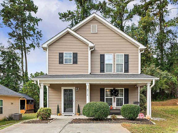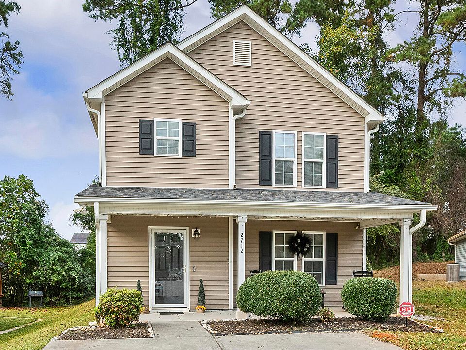 Welcome to this charming 3-bedroom, 2.5-bath home in a convenient Raleigh location! Built just 10 years ago, this home offers modern living with great curb appeal, featuring a spacious front porch and low-maintenance vinyl siding. Inside, the main level boasts durable vinyl plank flooring throughout. The kitchen is a standout with rich cherry cabinets, recessed lighting, and refrigerator included, and it opens seamlessly to the breakfast area and family room—perfect for everyday living and entertaining. The family room features a ceiling fan for comfort and style. Upstairs, you'll find three bedrooms and two full baths, providing plenty of space for family or guests. The neighborhood offers access to the Walnut Creek Trail, ideal for walking, running, or biking. You'll also love the convenience of being minutes from I-40, downtown Raleigh, shopping, dining, and entertainment—including outdoor concerts at Coastal Credit Union Music Park at Walnut Creek. Don't miss this opportunity to own a well-maintained home in a great Raleigh location!