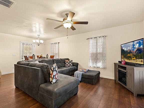 Recessed lightingSpacious front porchDurable vinyl plank flooringRich cherry cabinetsCeiling fan
