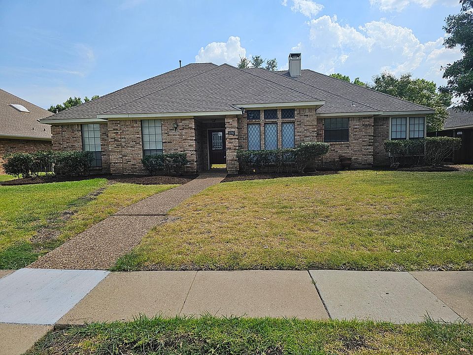 NO PETS!! NO PETS!! Updated 4 bedroom 3 full baths in established neighborhood near Legacy & Independence. Walking distance to neighborhood park, eateries, grocery stores and banking. Kitchen has granite counter tops, built in microwave, smooth surface cooktop, dishwasher, and refrigerator w/ ice maker. There are two living areas, two dining areas and a wood burning fire place. Two car rear entry garage with remote openers. Sky light in master bath with oval shape tub. Wood flooring and ceramic tile throughout. Lawn sprinklers. Lawn service is included in the rent.