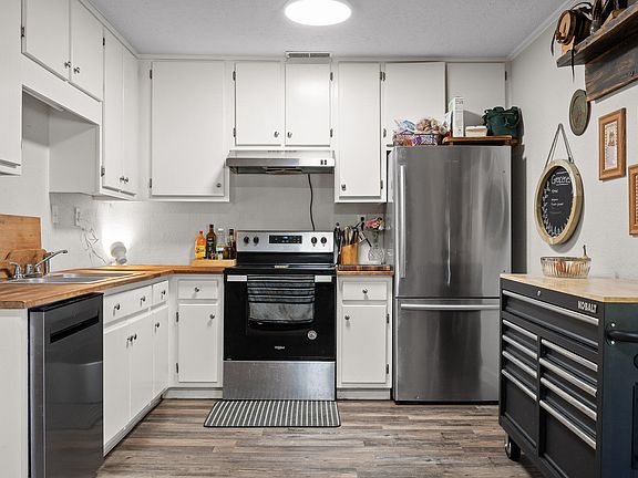 Fully renovated in 2021 (and looking just as flawless today), this home blends modern touches with everyday functionality. The kitchen is the kind you'll actually want to cook in — with sleek stainless steel appliances, butcher block counters, and an open flow that makes entertaining easy.