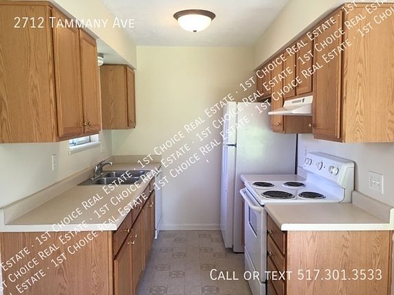 Spacious 3-bedroom, 1.5-bath duplex located on the East side of Lansing. 8 minute drive to MSU campus. Property backs up to Tammany Park. All three bedrooms on second floor, along with the full bathroom. Kitchen, living/dining room & half bath on first floor. Dining area has sliding glass doors which lead out to private back patio. Large, full basement great for storage. Washer/dryer hook-ups in basement. Private front entrance. 1-car attached garage (1 space in two car garage, shared with neighboring tenant). No pets allowed. No smoking allowed. Tenant pays all utilities. Tenant is responsible for lawn & snow maintenance.