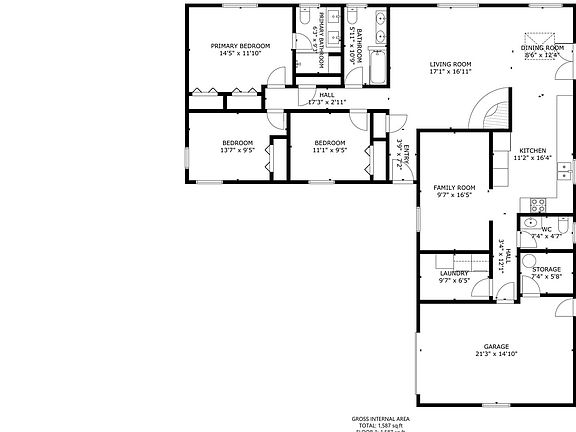 - Total interior livable area: 1,565 sqft