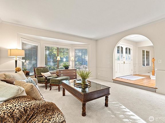 Sweeping views of natureMain level bonus roomArched doorwayExtensive millworkMultiple skylightsFive bedroomsSolid oak coffered ceiling