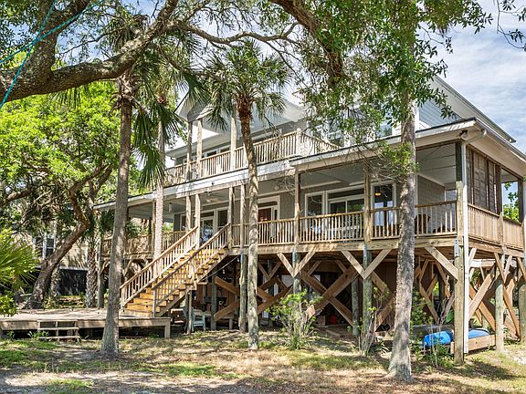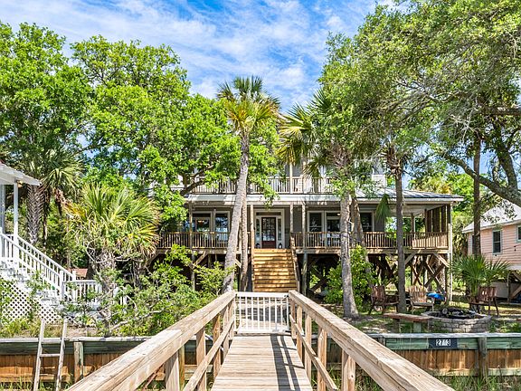 Welcome to 2713 Buccaneer Rd. A secluded paradise off the coast of Charleston, SC. This custom elevated 4 bedroom, 4 bath house is located on the secluded Goat Island, surrounded by a breathtaking waterway and ocean views of Isle of Palms, Charleston, SC. As you approach this home, you'll be greeted by a massive wrap around porch, perfect for enjoying the breathtaking scenery. Inside, you'll find beautiful mill flooring that takes you throughout the spacious living and dining room, kitchen and sun room. Upstairs features 3 bedrooms, each with their own bath and the primary bedroom with a walk out balcony, where you can take in the stunning waterway and ocean views. The outdoor patio spaces are over 1,500 SF, providing ample room for entertaining guests or relaxing with family.The house also comes with its own cottage, perfect for hosting guests, home office or in-law suite. The real highlight of this home is the rare deep water access and extended dock for boats and a boat lift. Don't have a boat? This property comes with one & a barge for any transporting needs.(Imagine having the ability to take your boat out on the water anytime you want! And if you're not in the mood for boating, there's always the top deck where you can enjoy a 360 view of the ocean and wetlands breezes. In addition, the island has over a mile of walking trails and less than 50 homes, providing a peaceful and private environment. This is truly a rare opportunity to own a piece of paradise right off of Isle of Palms. Don't miss out on the chance to call this stunning home yours!