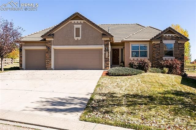 FANTASTIC, FULLY FINISHED MAIN-LEVEL LIVING, LIGHT & BRIGHT LOW MAINTENANCE 4 BED / 3 BATH / 3 CAR GARAGE STUCCO & STONE OPEN FLOOR PLAN RANCHER W/MOUNTAIN VIEWS ON QUARTER ACRE LOT IN HIGHLY DESIRABLE COMMUNITY OF FLYING HORSE ~ GORGEOUS NEW KITCHEN W/PORCELAIN COUNTERS ~ STAINLESS KITCHENAID APPLIANCES & FARM SINK ~ 5-BURNER GAS COOKTOP / STOVE ~ LARGE ISLAND W/BREAKFAST BAR LIP ~ BUILT IN PANTRY & LOTS OF SOFT-CLOSE 42" CABINETRY ~ NEW LUXURY VINYL PLANK FLOORING ON MAIN ~ SEPARATE DINING AREA W/WEST FACING VIEWS ~ GREAT ROOM W/GAS FIREPLACE & WALK-OUT TO SPACIOUS SEMI-ENCLOSED PRIVATE PATIO ~ PRIMARY BEDROOM SUITE W/WALK IN CLOSET & BEAUTIFULLY UPDATED CUSTOM BATH W/OVERSIZED TILED SHOWER ALONG W/DOUBLE SINK VANITY & GRANITE COUNTERS ~ LAUNDRY AREA ENCLOSURE ON MAIN LEVEL W/CABINET & SHELVING ~ WASHER/DRYER INCLUDED ~ DOWNSTAIRS LEVEL OFFERS FULL BATH ~ HUGE FAMILY ROOM ~ EXTENDED BEDROOM W/WALK-IN CLOSET PLUS 4TH BEDROOM W/ADDITIONAL WALK-IN CLOSET ~ FINISHED STORAGE AREA ~ A/C ~ GARAGE W/SERVICE DOOR TO BACK YARD ~ HOME SITS AMID ESTABLISHED LANDSCAPING WITHIN A COMMUNITY OFFERING FABULOUS AMENITIES W/PURCHASE OF CLUB MEMBERSHIP, INCLUDING GOLF, TENNIS, POOL, SPA AND LUXURY DINING ~ QUICK ACCESS TO I-25 CORRIDOR AS WELL AS HWY 83 FOR EASY COMMUTES TO DENVER, DOWNTOWN COLORADO SPRINGS, USAFA, SHRIEVER AND PETERSON AFB ~ A MOVE-IN READY BEAUTY ! NOTE THAT ALL FURNISHINGS ARE NEGOTIABLE, EXCEPT FOR TVs.