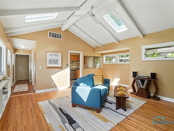 Cozy English Cottage. Charm & character thru out. Not your Typical cookie cutter ranch. You'll enjoy the Stone wall Gas fireplace & beamed ceiling. Open Concept LR adds lots of natural light From Skylights & Windows. Built-in Custom bookshelves adds storage for your favorite items. Totally renovated New Bath w/ custom vanity made by seller. Refinished Hardwood floors in LR,BR & HW. Kitchen has New flooring, New SS Appliances, Paint & countertops. Freshly painted exterior welcomes FHA & VA buyers. Plenty of deck space in your private yard. 2 sheds for outdoor storage needs. Keys at closing