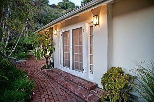 Charming one-story 3 bedroom/2.5 bath home on a quiet street in BHPO, in Benedict Canyon. French doors open to lush gardens surrounding the skylit home and private yard with spa. Hardwood floors throughout! Large living room with fireplace, skylit dining room, and eat-in kitchen make this a perfect home to move right in. Easy to show!