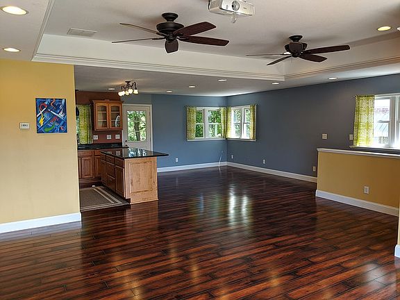 Reitz Hill house with the view. (Will work with buyer's agents) This is an updated home with an impressive main room that has a modern look. A raised ceiling with laminate flooring and wall of windows that overlook Reitz Bowl and practice field as well as the river. 11 total windows and two large fans in the main room make for a bright and outdoor feeling. The kitchen features stainless steel KitchenAid appliances with a gas range, dishwasher and garbage disposal. Maple Medallion Gold cabinetry with a large island, granite counter tops and an undermount stainless steel sink. Master Bathroom is also quite large and features a tile walk-in shower, tiled floors with his and her sinks, sizable mirror and raised ceiling. Master Bedroom is spacious. Carpeted with two large mirrored closets, tall ceiling, large fan and 5 windows. Spray foam insulation on roof and behind main floor walls, coupled with a high efficiency furnace, makes this a very energy efficient home. Attic is climate controlled for additional storage. Walk-out basement is actually street level that is bright and open. It exits into a wide covered carport that is under the front patio. One of the few houses on the hill's rim with covered parking that allows the owner to avoid the weather. The front patio is one of the biggest on Reitz Hill with a commanding view. It is great for watching barges on the river, looking at the LST, cheering on Mater Dei or Reitz games, as well as watching fireworks on the Fourth of July. Hard to describe how consistently beautiful and fulfilling the view is on a Monday morning or on a Friday night. Freshly reworked back and side yard creates flat land on the top of a lush hill to allow for great nights that feel like you're in the country woods. Really a one of a kind home for the right person or couple looking to experience the best of what the Westside has to offer.