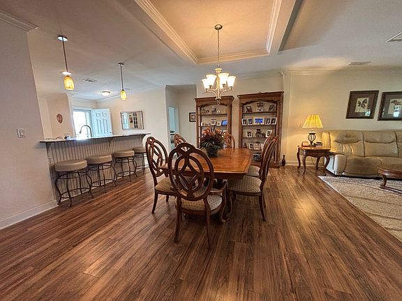 Stunning Custom-Built Home with Pond Views!Welcome to your dream retreat! This beautifully crafted 3-bedroom, 2-bath home offers an open-concept layout designed for comfort and style. The heart of the home features a modern kitchen with quartz countertops, perfect for entertaining. This home comes fully furnished, including a golf cart, making your transition seamless and stress-free.Key Features: 2.5 golf cart garage with ample storage Luxury vinyl plank flooring in living and dining areas Split floor plan for privacy and functionality Spacious primary suite with oversized walk-in closet Large laundry room with built-in sink.Enjoy three distinct outdoor seating areas: A 10x25 enclosed patio with vinyl siding windows ideal for year-round enjoyment Two covered 10x15 patios overlooking a serene oversized pond.Recent Updates: New roof installed in 2025 for peace of mind.Whether you're looking for a peaceful escape or a stylish space to entertain, this home checks every box. Schedule your private showing today and experience the lifestyle you deserve.