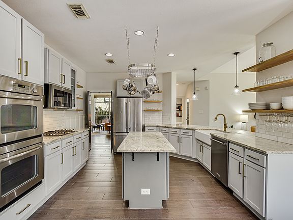 Smartly updated with timeless elements that makes this fabulous home look/feel years younger than it's actual age. Open concept ideal for families and entertaining. Windows galore offers abundance in natural light throughout. Master + Guest Bed/Bath down. Backyard transitions into green space and nature trails. Located in the heart of Majestic Oaks, Steiner Ranch! This is the coveted Travis plan, built by Newmark Homes!