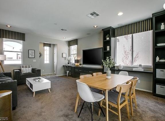Beautiful 2-Story Home in a Quiet Cul-de-Sac! Spacious 3-bedroom plus loft home with 1,739 sq. ft. and a 2-car garage. Enjoy modern features including stainless steel appliances, granite countertops, island with breakfast bar, and tankless water heater. Interior highlights include tile flooring, carpet, and blinds throughout. The master suite offers a bay window, walk-in closet, and a luxurious bath with double sinks, separate tub, and shower. USB ports in the kitchen and master bedroom for convenience. Relax in the huge backyard with a covered patio and take in stunning Strip and mountain views! Section 8 approved.