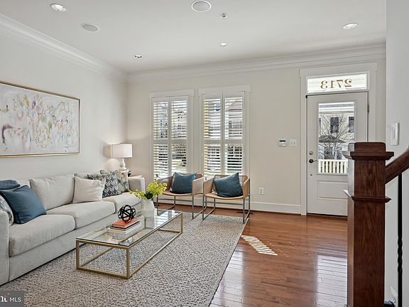 Welcome to this bright and airy, spacious townhome set alongside the trails of Rock Creek Park. Enjoy the serenity of the neighborhood trails and zen atmosphere surrounding this beautiful light filled home. This meticulously maintained former model home, enhanced with designer touches throughout is move-in ready! Enjoy four finished levels, gleaming hardwood floors, built-in whole house custom speaker system and a rooftop deck. The main level offers a light-filled living room, a spacious dining room, and a large rear kitchen that opens to a balcony. Upstairs you will find a luxurious primary suite, expansive walk-in closet, custom frameless shower, soaking tub and gorgeous tiles throughout. The second level also has a secondary en suite bedroom and a convenient laundry room. The lower level boasts a quiet home office with gas fireplace, custom bookcase and 2 car garage.