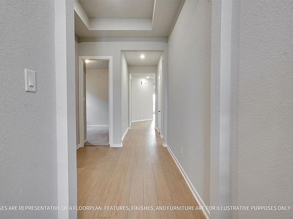 Introducing a stunning masterpiece by Tricoast Homes, this floor plan embodies modern elegance in the vibrant Lago Mar community. Step inside and be immersed in a thoughtfully curated open-concept floor plan that exudes sophistication. This seamless flow leads you into an updated kitchen, where exquisite countertops and stainless-steel appliances come together to create a designer-inspired culinary haven. Retreat to the primary bathroom, a sanctuary of luxury featuring contemporary finishes that elevate your everyday experience. Step outside to your private oasis on the covered patio, perfect for relaxation or entertaining guests. Each Tricoast home is a celebration of space and light, boasting high ceilings in the living room and an abundance of windows that invite the outside in. With smart home features like a video doorbell and the sophistication of Luxury Vinyl Plank flooring throughout all common areas, this is more than just a home; it’s a lifestyle waiting to be embraced!