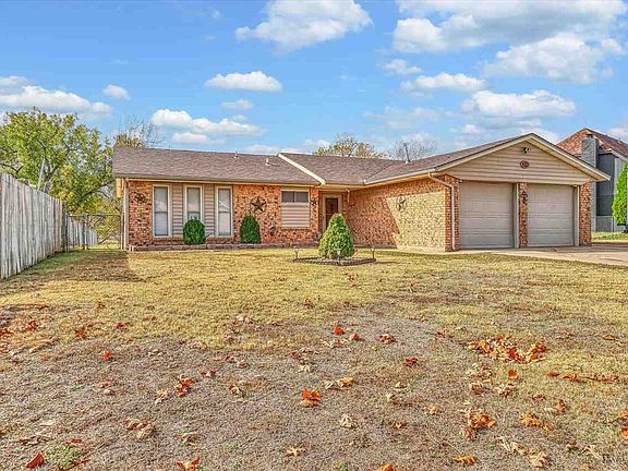 Wonderful well kept home in great location. Back of the house have views of pond. Beautiful LVP floors throughout, carpets in bedrooms, updated tiled shower in primary bath. Large living area, wood burning fireplace with gas starter, nice kitchen, dining area have bay windows. Beautiful refinished wood work fenced in yard. Covered patio. Freshly painted. Call 580-248-8800 for showing or text 580-581-7870 for more details.