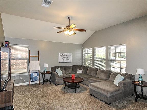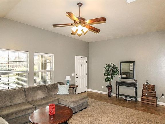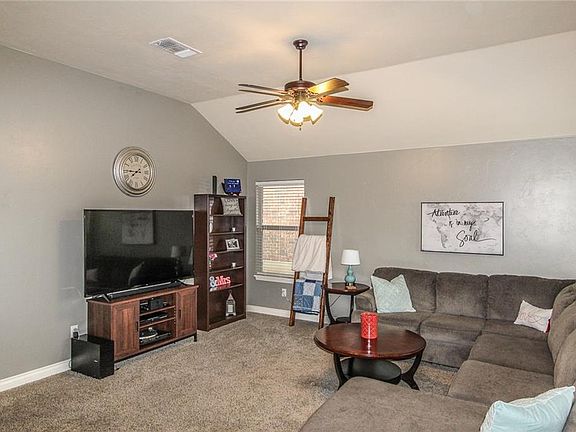 This MOVE-IN READY home in the Trailwoods neighborhood is located minutes from OU, I-35, and Tinker! The home has the super energy efficiency and style you expect from an Ideal Home. You will love the counter space in the kitchen and the storage throughout! The home has a large living area with high ceilings, newer paint, and lots of natural light. Other features include: stainless steel appliances, maple cabinets, large breakfast bar, a travertine tile back splash, quartz counter tops, a pantry, large walk-in master closet, and a covered patio with a fenced yard. The roof was replaced 2016. The Trailwoods neighborhood has several parks, a new splash pad, a playground just around the corner from the home, and walking trails around the lakes! Call to see this home today!