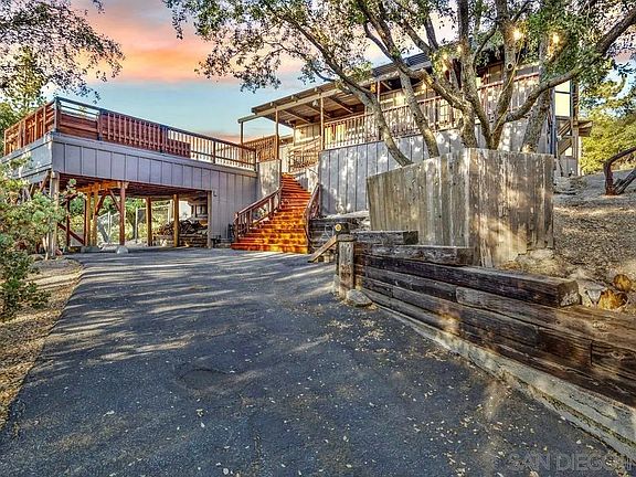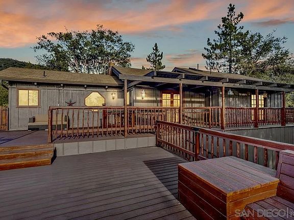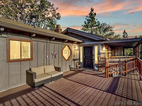 Welcome home to this one of a kind, modern cabin in the mountains! Whether you want to relocate here full time or make this a second home to get away from it all, this mountain home is overflowing with charm and provides a true sanctuary from the hustle and bustle of the busy life. Practice yoga on the expansive wrap around deck while taking in views of Lily Rock, or sip morning coffee from the backyard deck right off the kitchen and family room while listening to the birds chirp. During winter months there is plenty of snow and this amazing property turns into a winter wonderland! One thing you can count on; you'll always be breathing fresh mountain air. This stunning home features an open floor plan with vaulted wood ceilings throughout. A wood-burning dual sided fireplace between the living room and the kitchen. Several sets of french doors that lead to multiple decks, including one right off the primary bedroom. The primary bedroom includes sitting area/office nook as well as large walk-in closet. This home has been upgraded with new tile floors, interior paint, Brand new back deck made of redwood, updated roof, and new fans. Conveniently located between Orange and San Diego Counties which makes the perfect opportunity for income purposes. Nightly rentals allowed. This mountain oasis won't last long!
