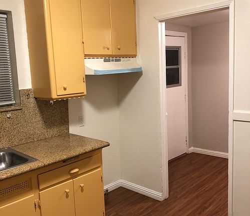 This is a completely newly remodeled back house, with a laundry room, small front-Side, and backyard. Newly refurbished interior (new paint, new floors, all-new fixtures, outlets, ceiling fans, blinds). Street Parking only.