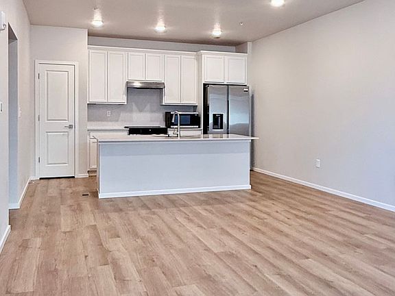 Step into a bright, open living area with natural light and a smooth flow between the kitchen and dining space. The kitchen features stainless steel appliances, ample cabinet storage, and a pantry for effortless meal prep.