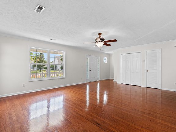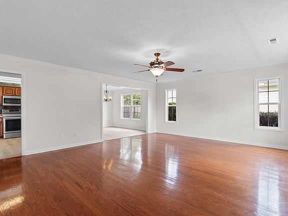 Welcome to this charming 4-bedroom, 2.5-bath home set on a beautiful half-acre lot with mature landscaping. From the front porch to the large fenced backyard, there’s plenty of space to relax, play, and gather. Situated on a quiet cul-de-sac, the property offers both privacy and curb appeal. The first floor is designed for everyday living and entertaining, featuring a spacious living room, a dining room conveniently located next to the kitchen, and a den/flex space overlooking the large backyard. The kitchen is practical and inviting, with stainless steel appliances, custom cabinetry, and ample workspace for everyday meals or weekend cooking projects. A laundry room and a convenient half bath complete the first floor. Just outside, the expansive backyard and generous patio provide the perfect setting for grilling, playing, or enjoying the outdoors. Upstairs, the primary suite is a private retreat with a ceiling fan, durable and stylish flooring, dual sinks, a garden tub, a separate shower, and a walk-in closet with custom cabinetry. The three additional bedrooms feature the same low-maintenance flooring, and the largest of these is spacious enough to serve as a second living area if desired. Additional features include a 2-car garage with an extended driveway and a community with a pool and low HOA fees. Located just minutes from schools, dining, and everyday conveniences, this home perfectly blends comfort, functionality, and a prime location.