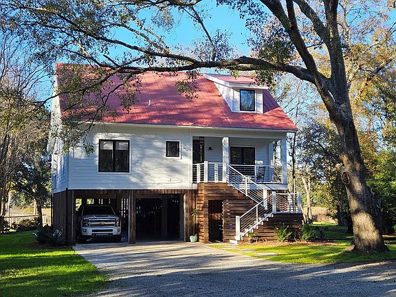 Custom, Elevated, Waterfront Home on over 2 acres! Fully furnished, but some pieces can be removed to suit! Electric, water, Wi-Fi, lawn maintenance, and trash service included! Less than 15 minutes to get your toes in the sand on Kiawah Island and less than 20 minutes to downtown Charleston! John's Island boasts some of the best new restaurants in Charleston... and they are all within 10 minutes! Beautifully renovated and outfitted with custom cabinetry, Italian marble countertops, a massive Soapstone island with a gas cooktop that is perfect for bringing out your inner chef! You will find high end appliances, custom lighting, and tasteful decor throughout. The owner's suite is located on the first floor and boasts a custom walk through closet that leads to a contemporary full bathroom. Upstairs, there are two more bedrooms opposite each other. One bedroom is fitted with a queen bed and its own full bath, while the other bedroom is perfect for kids of all ages. There are 3 custom floating single beds and a quality futon that doubles as a full size bed. Perfect for sleepovers! This truly is a custom home that is perfect for entertaining. Just off the main living/kitchen area, a massive 12' sliding door leads out to the back porch where you can take in all the views the Abbapoola Creek has to offer. Whether it's the cotton candy skies at sun set or the amazing wildlife, it is a sight worth seeing. There is also an outdoor living, dining, and grilling area complete with sink on the main level. Down the back stairs is a custom outdoor seating area equipped with a fire pit for the cool Winter in Charleston nights. While it isn't deep water, there is still great access to open water on either side of low tide. There are 2 kayaks available for use, although the dock has been taken down and is slated to be rebuilt in 2024. Again, this is fully furnished and rent includes all utilities, wifi, and lawn service. Month to month negotiable. Unfortunately, we cannot allow cats at this time, but house trained dogs and caged pets are acceptable. Smoking limited to the exterior and ashes/butts must be properly disposed of. L:ength of lease negotiable. Price listed includes the reasonable and responsible use of all furnishings, utilities, wi-fi, provided lawn service, and necessary maintenance. Just bring your clothes and toiletries!