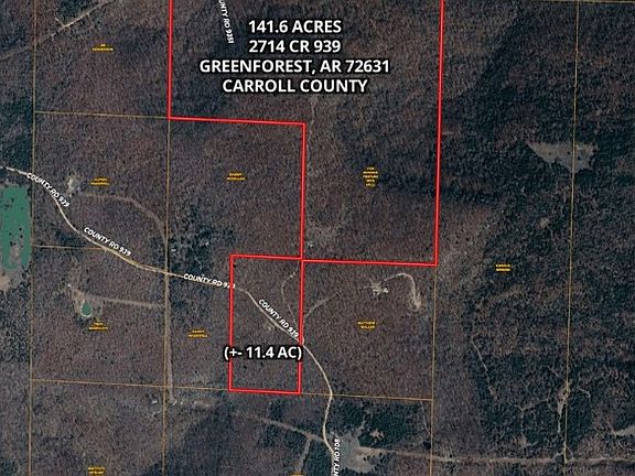 Stunning Osage Valley View Ranch. 136.32 acres of Ozark Heaven in popular Northwest Arkansas! Perfect for Recreational, Hunting or Legacy holding. 1800-2,100 ft elevations overlook the stunning green Osage Valley. Waterfalls, creek, spring fed pond, caves, bluffs, 2 deer stands, mature trees and wild berries make this land a year round outdoor paradise. Interior trails get you close to an abundance of deer, turkey, black bear, and wild hogs. Existing road cuts allow driving access through property. Perfectly located in Carroll County, one of four counties that make up the popular Northwest Arkansas Region. Just minutes to Berryville, Green Forest and Eureka Springs. Approximately 45 mins to Fayetteville, 1 hour to Bentonville-Rogers.