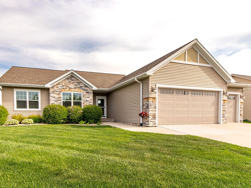 This beautiful home in North Ames is just what you have been looking for! With views of the pond, you will love the open and airy great room. A large kitchen island with seating is the center of attention - the stone countertops are unique and gorgeous! Cherry cabinets offer ample storage, with under counter outlets and lighting galore. Living room has vaulted ceilings and large south-facing windows. Primary bedroom faces the pond, with an attached private bathroom (you will love the sea glass touches!) and walk-in closet. A guest bath and two additional bedrooms with large closets complete the main level. The basement is a fantastic place to entertain. Rec room has daylight windows and is plumbed to add a fireplace, as is living room, should buyer choose. 4th bedroom is large, with a large closet, and 3rd bathroom. SO MUCH storage space! The heated garage is a dream come true - park three cars and create a shop or storage in the extra space. Relax on the back deck/patio and fish in the fully stocked pond. NEW ROOF, GUTTERS and FASCIA coming soon! Prefer 8/1 closing.
