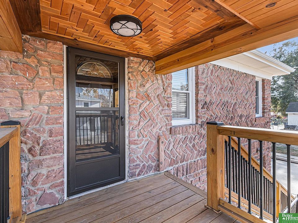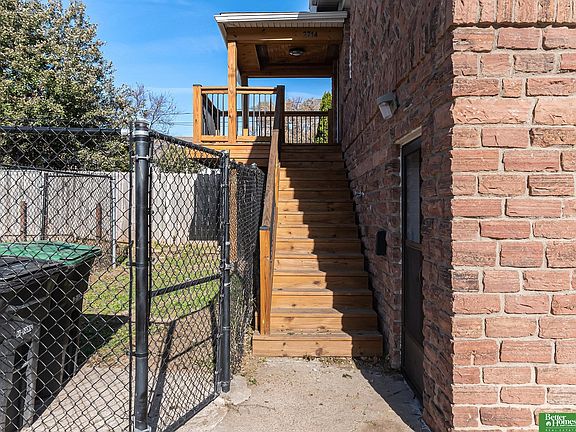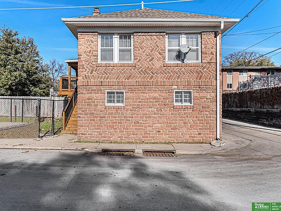 Charming brick cobblestone 2-bed, 2-bath home in Omaha's centrally located Columbus Park area. This property blends historic character with thoughtful updates, offering an inviting layout with distinctive architectural details. The main level features an open living space filled with natural light and a striking spiral staircase leading to the upper level, where you'll find hardwood floors, the kitchen, and an additional living area. Exterior highlights include a fully fenced yard and off-street parking. Conveniently located near Midtown, downtown, parks, and major commuter routes near I-480.
