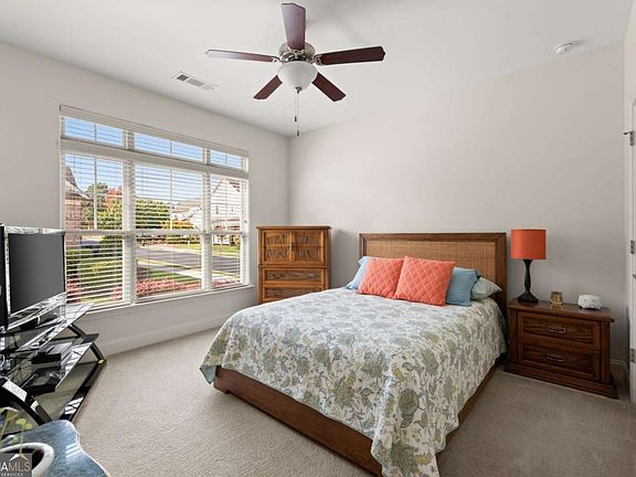 Welcome home! Move-in ready 3BR/3BA home in the sought-after Wellstone 55+ community! The entire home has been freshly painted and features a brand new roof! Main level features primary suite with ensuite bathroom, plus secondary bed/bath. Step out to the inviting screened porch from the secondary bedroom or the great room. The kitchen boasts granite countertops, ample cabinets & opens to the great room with a gas fireplace. Upstairs offers a 3rd bed/bath & large walk-in storage room that could be finished for more living space. Oversized garage with extra storage/workshop area. HOA covers exterior maintenance, insurance, termite & trash. Community amenities include saltwater pool, hot tub, clubhouse, garden & sidewalks. Convenient to shopping, dining, medical & GA 400/Northside Forsyth-country feel with close-in convenience!
