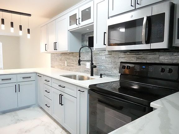 Stylish light fixturesUpgraded flooringElegant countertops
