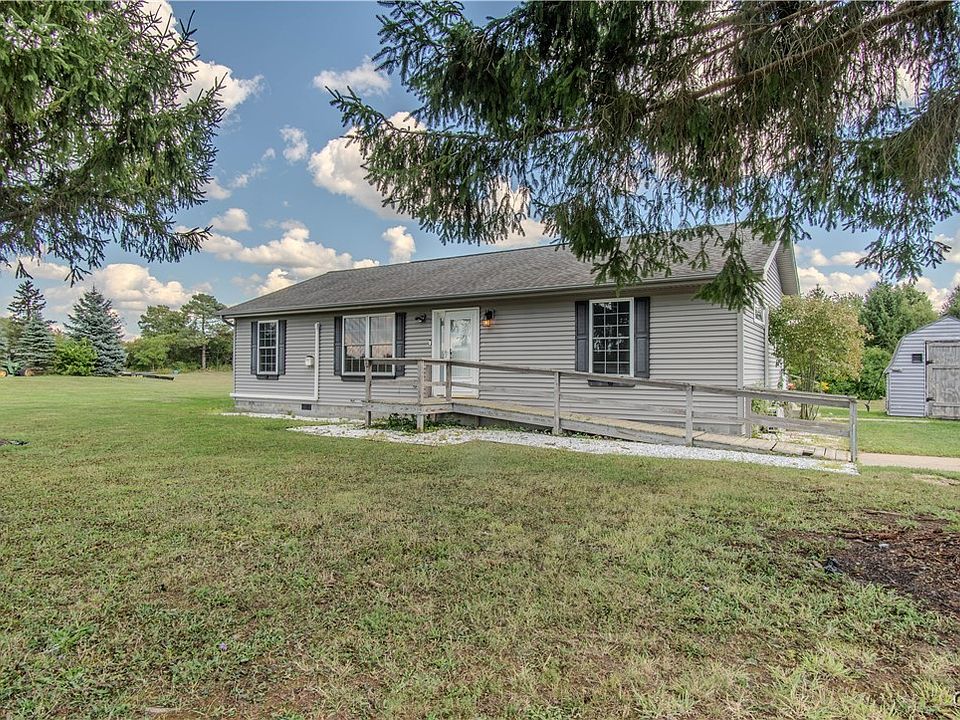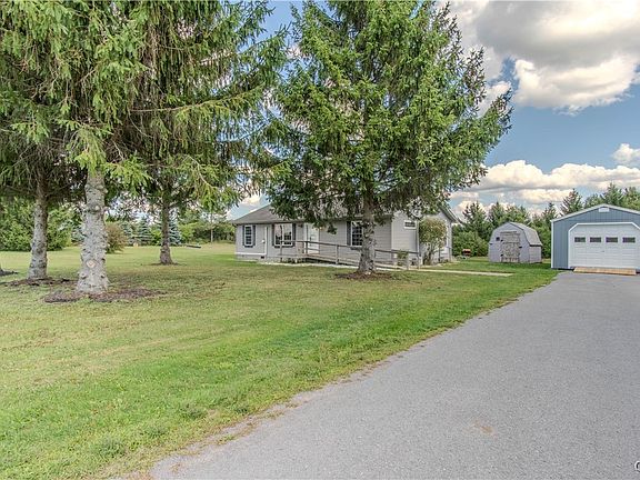 This ranch home offers comfort and convenience on just over an acre of land. Tucked just outside of Watertown and a short drive to Fort Drum, you’ll appreciate the blend of privacy and accessibility. The open kitchen and dining area flow seamlessly into the living room through a graceful archway, making the space ideal for gatherings. Sliding glass doors off the dining area provide easy access to the fenced backyard, while French doors in the living room open to a versatile room that can serve as a third bedroom or a home office. The primary suite includes its own full bath with both a soaking tub and separate shower. Updates include new flooring, a fenced yard, a new refrigerator/freezer combo, and an additional freezer. Another improvement is the detached garage-style building with overhead door provides flexible space with a reinforced floor for vehicle storage. A front entry ramp adds extra accessibility completes the package. This is a must see home, schedule today.