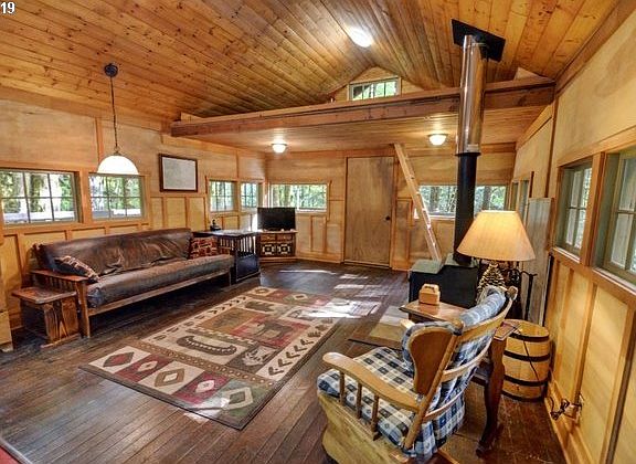 - InteriorFeatures: Country Kitchen, Vaulted Ceiling(s), Furnished, Wood Stove, Wood Floors, Free-Standing Refrigerator, Living Room/Dining Room Combo