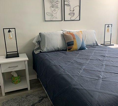 1 bedroom furnished apartment on main floor available now. The apartment features a ready to use kitchen and spacious living and dining room. Bedroom has an attached bathroom and walk in closet. All utilities and high speed wifi included. Laundry facilities available on main floor. This is ideal for someone in town for work or needing a flexible shorter term rental. Let me know if you have any questions. Furnished rental ideal for someone in town for work or a shorter term. All utilities are included along with wifi. SMART TV and new furniture. Washer and dryer in building. Ground floor unit. Off street parking.