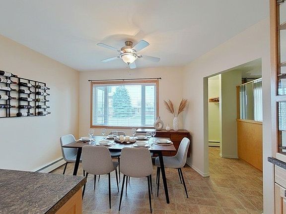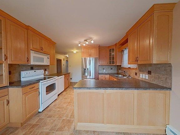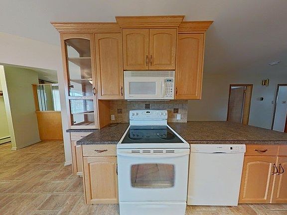 Modern kitchenHardwood flooringMain bathroom vanityMost appliancesExterior doorsCustom built barKitchen with attached dinette