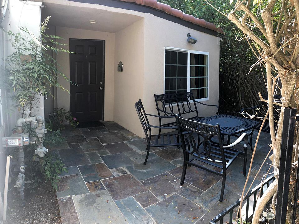 Guest house in Bel Air featuring a large living room, full kitchen, separate den/study, and bedroom.