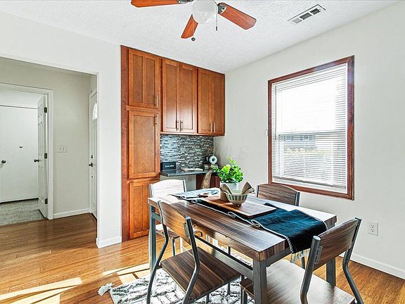 Welcome to this charming 3 bedroom, 1.5 bath two-story home featuring a thoughtful blend of updates and timeless comfort. The entry, kitchen, and eat-in space showcase beautiful bamboo flooring. The kitchen has been refreshed with newer cabinetry and a stylish backsplash. A spacious living room with a cozy wood-burning fireplace invites relaxation, and brand-new carpet flows throughout the home for a fresh feel.
