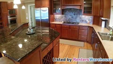 This striking home offers 4 bedrooms on the top level. Large open kitchen with top of the line! S.S appliances, Wolf gas stove, granite counter tops, GIANT granite island, and a walk out to the deck for grilling. Open layout on the main level gives you vision of 50'+ from the kitchen to the tall living room pictures windows, which over look Lake Minnetonka. Private area with trees all around. Fully fenced in back yard! Great for dog owners! Large windows throughout the property provide ample amounts of natural light. Separate master walk-in closet and bath. Dogs are negotiable. Close to trails, parks and easy access to Lake Minnetonka!!