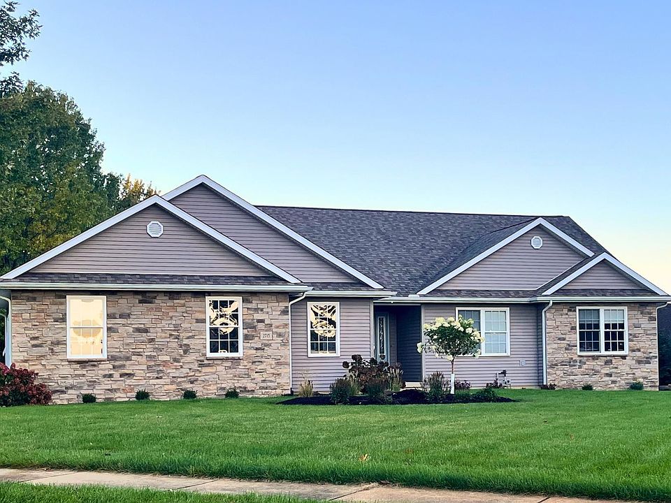 Shadow Lakes....one of the most desired neighborhoods in Warsaw. Where life is enjoyed at home and throughout the common areas. An exciting lifestyle awaits you here. Enjoy the neighborhood pond with picnic area, swimming beach, beach volleyball and private trails. Here, a beautiful, spacious ranch home welcomes you home. Greeting you curbside with a front stone, side-load garage and a corner lot that offers picturesque views of the close by pond. Offering over 3,000 sq. ft. of finished living space with recent updates throughout both levels. From your first step inside, you'll be captivated by the scenic backyard views, ample natural light and vaulted ceilings in the living room. Open to the dining room and nearby kitchen. Upgraded cabinetry and appliances are featured here and convenient access to the laundry room just off the garage. Down the hall, you'll find the primary bedroom with primary en-suite and walk in closet. As well as two additional bedrooms and full bath. The walkout basement features two additional bedrooms, full bath, unfinished storage area and a large family room that leads you the the backyard concrete stamped patio. Additional amenities include new paint throughout, upgraded light fixtures through main living areas, and new water heater, newer R/O water system, newer Rabb water softener, landscaping, newer HVAC, hardwood floors and much more!