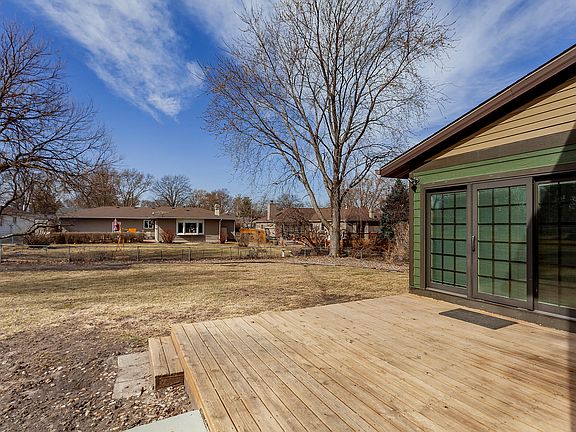 The exterior boasts a fenced-in yard, a wood deck, a brand-new concrete patio, and newer siding. A new roof (2023), updated gutters, and energy-efficient windows (2011) enhance durability and curb appeal. Step inside to find a spacious main floor featuring a large living room on the front of the home and a large family room with new carpet, vaulted ceilings with exposed wood beams, and a cozy wood-burning fireplace with a gas starter toward the back of the home. The stunningly remodeled kitchen (2025) includes all-new appliances, cabinetry, countertops, and fixtures, complemented by a breakfast nook and a formal dining room. An updated half bath and convenient access to the attached two-car garage complete the main level.
