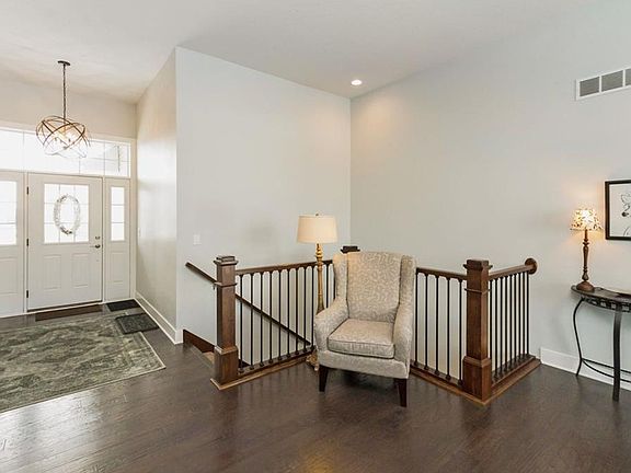 Head-turning quality from head to toe! Granite tops, tile and wood floors, solid core doors. Grand entry with 11' ceilings and wrought iron railings leads to a gas fireplace w/ blower framed in dry-stacked stone and built-in shelves. Beautiful flow of space in an open floor plan, including large kitchen with high-end appliances and counter depth fridge. Bedrooms with 11' ceilings are trimmed out with transom windows. Separate Master Suite located at the back of the home, transom windows, dual sinks in marble top, oversized walk-in tile shower. Over 2800 SF Finished, generous lower level family room with wet bar, 4th large bedroom and 3rd bath. Basement finish not included in assessment. Basement area under front stoop is a great storm shelter or wine/beer storage. Closets in all baths, entry from garage include a built-in locker and closet and main floor laundry with granite top, sink and cabinets!