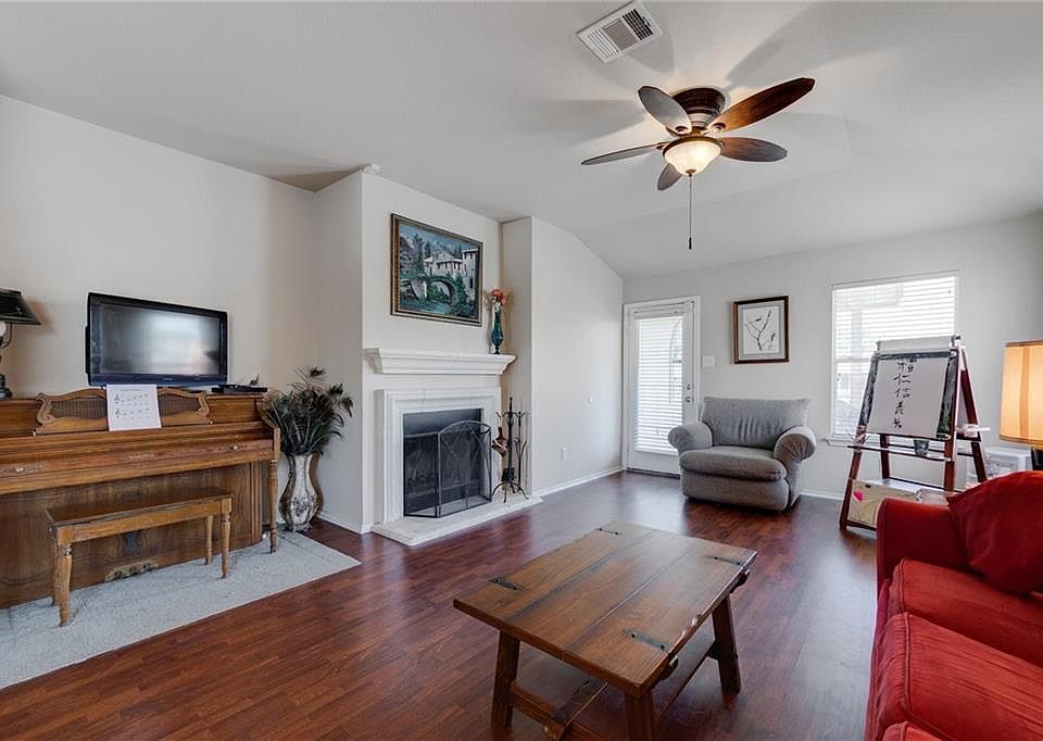 HUGE SOLAR SAVINGS! Charming, brick, one story in Round Rock with a great open floor plan, high ceilings and tons of natural light! The spacious living room features a cozy fireplace and opens to the eat-in kitchen with breakfast bar, matching appliances and lots of storage. The master suite feature a garden tub, separate shower and huge walk-in closet. Outside enjoy fund in the sun in the large backyard or relax under the covered patio. Recent upgrades include stained concrete/freshly painted interior!