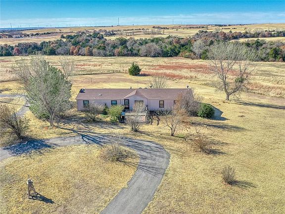 Five bed, 3 bath home on FIVE ACRES including a SHOP BUILDING with electrical â AND a second house with carport! This place has it all. The main house has a large kitchen with an island, a study with french doors, two living areas, a fireplace and a storm shelter. The second house is 1600 square feet with large front porch, generator, and storm shelter. Great location, close to I-40. Schedule your showing today! Choice of area schools - Maple, Calumet, Geary, Hinton. (Buyer to verify)
